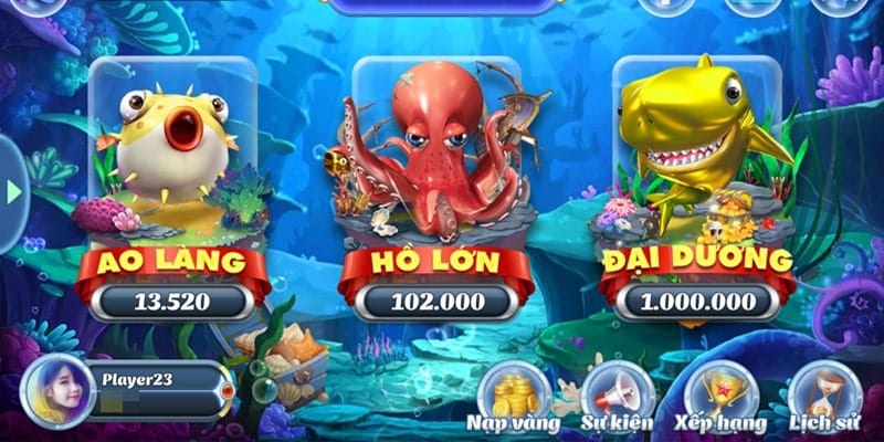 Nếu tài khoản đã có số dư, bạn có thể chọn 1 trong các ngư trường. Tiếp đến, xác định mức cược để bắt đầu chơi Bắn Cá đổi thưởng. Trong quá trình này, anh em cần có gắng tiêu diệt nhiều cá nhất có thể. Đặc biệt nếu đủ vũ khí thì hãy ngắm ngay boss lớn để sớm kết thúc ván đấu với điểm thưởng cao.